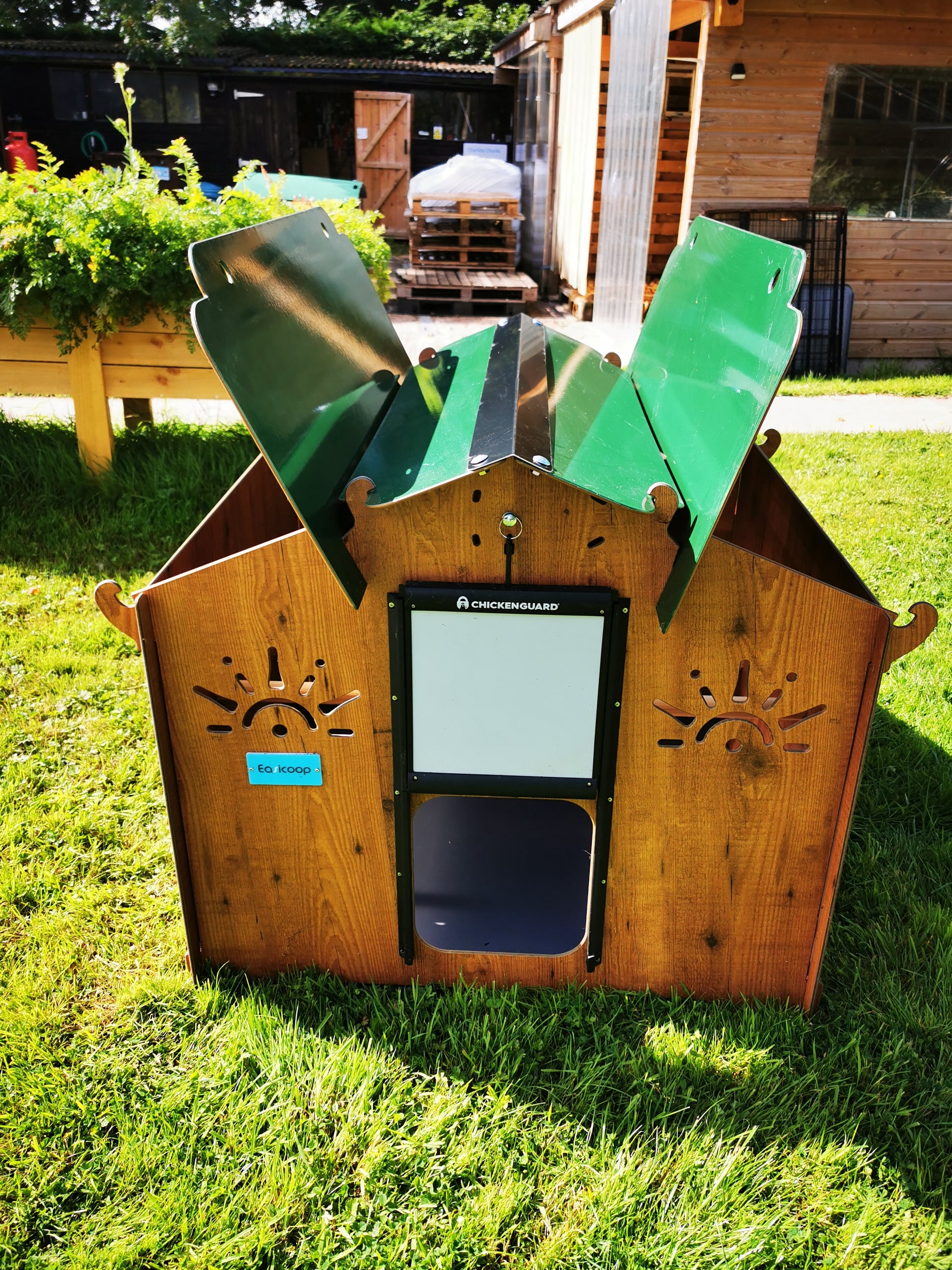 - This coop is pre-drilled for the electronic Chicken Guard automatic door opener.