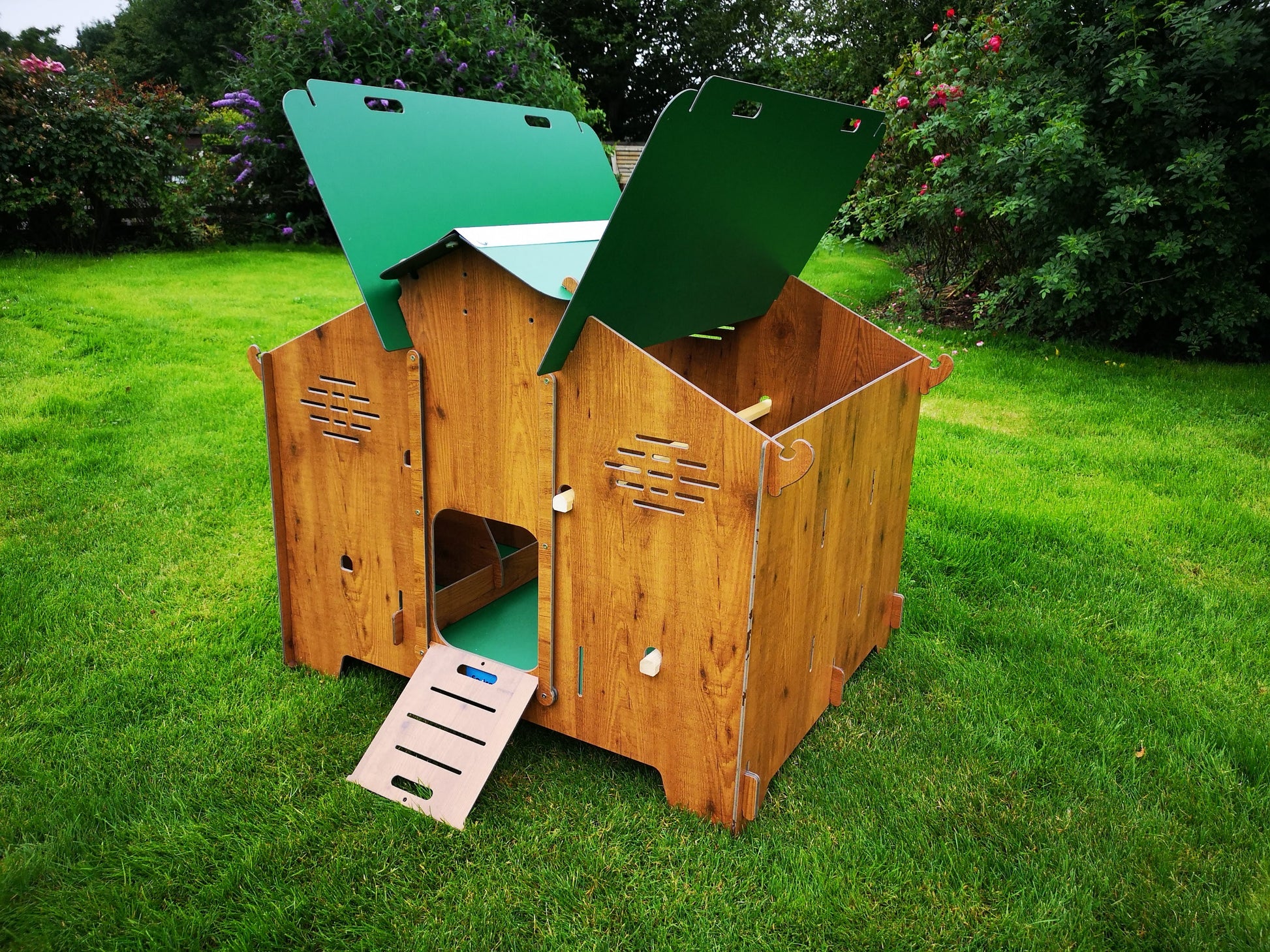 Our hen houses will arrive flat packed, assembly takes approx 30mins. It take approx 15 minutes to attach the Chicken Guard door to the front panel, after that its quite straight forward.