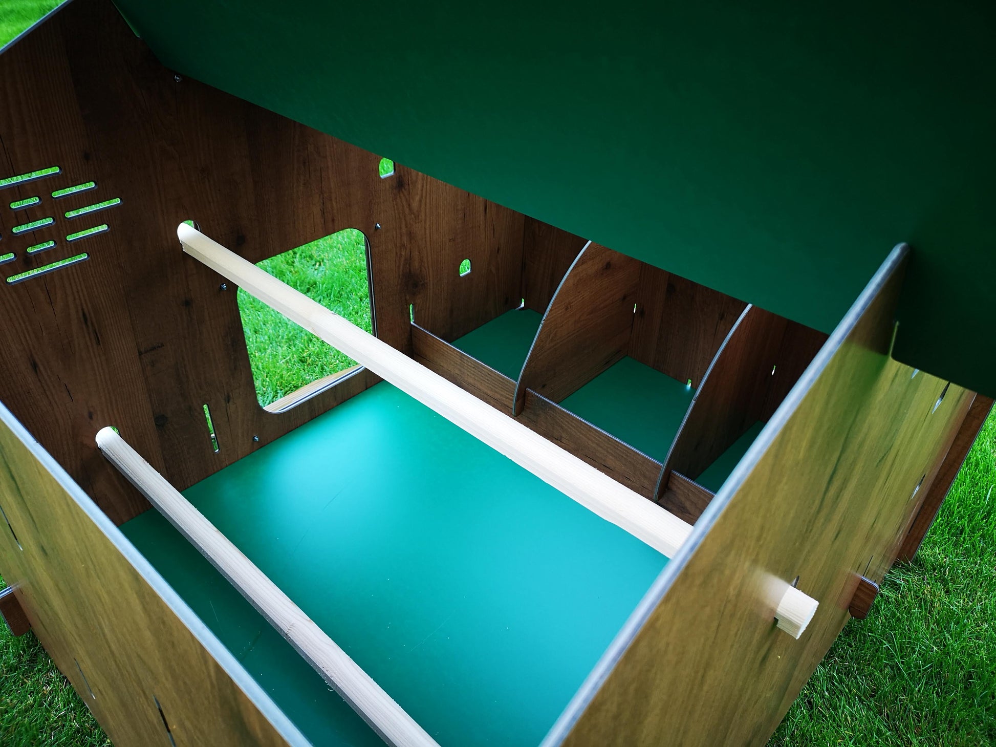 - This coop is pre-drilled for the Chicken Guard automatic door opener.